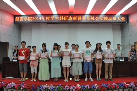 上二图为:2014年6月15日下午,我院2013-2014年度学生科研表彰大会暨暑期社会实践动员大会在图书馆一楼学术报告厅举行。