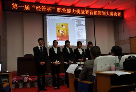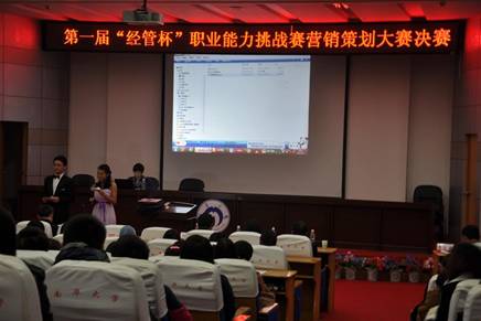 上三图为:2013年12月8日晚,第一届“经管杯”职业能力挑战赛营销策划赛决赛在红湘校区图书馆报告厅完美落幕。