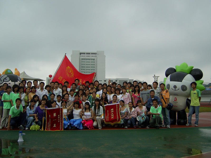 006年运动会夺得团体总分第一名后,运动员和工作人员一起合影,分享胜利的喜悦