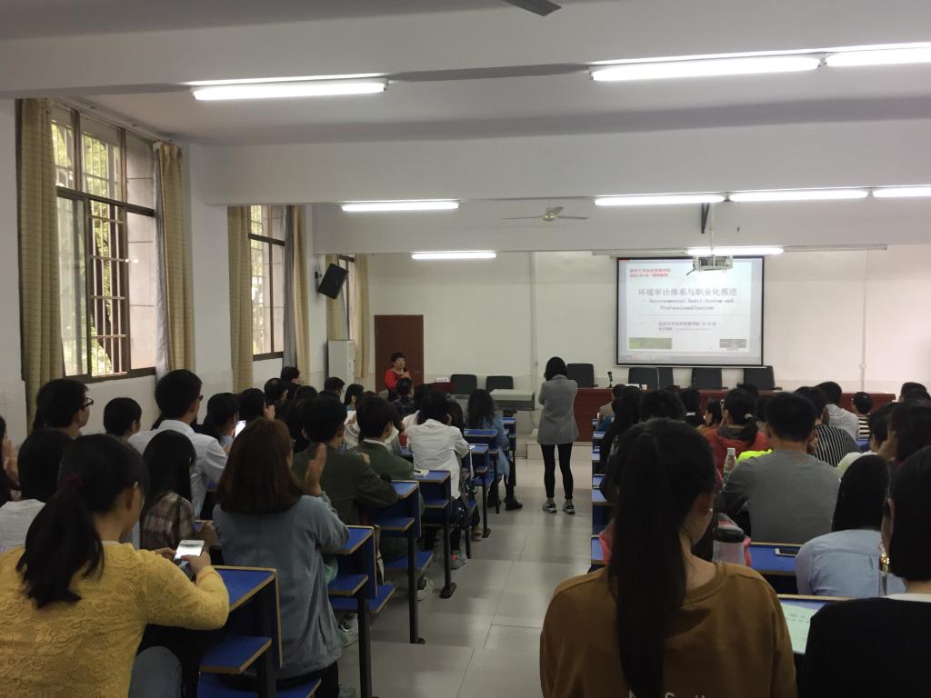 王立彦教授以“环境审计体系与职业化推进”为主题,内容分为三个部分:第一,根据许多相关性文件提出了当今环境审计体系存在的一些问题。第二,提出了我国环境审计体系应该如何构建,这其中包括王立彦教授创新性提出的三维架构。第三,我们应该如何实现环境体系。讲座还包含了互动环节,王教授鼓励在场的老师学生们积极交流,不仅单向向主讲人提问,并且鼓励现场各位同学之间开展讨论。此外,衡阳市审计局领导还就目前我国环境审计情况提出了基于工作岗位的想法。