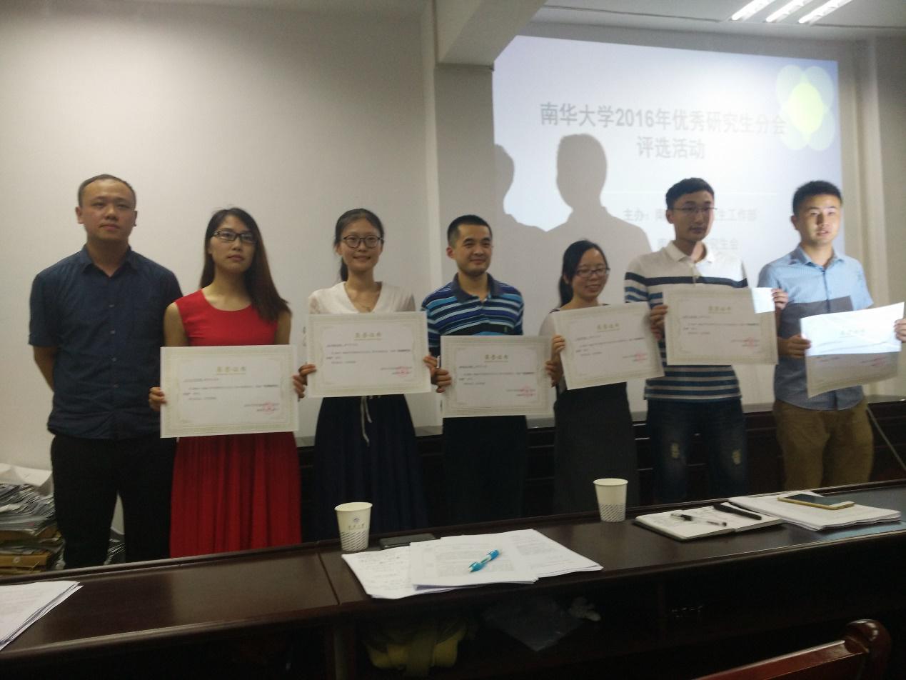 2016年6月24日晚19:30,由南华大学研究生工作部主办,研究生会协办的2016学年“优秀研究生分会”评比活动在研究生院四楼会议室举行。思想政治与就业指导科陈思涵老师、研究生会副主席徐振、各分会代表担任现场评委。我院研究生会参加此次评比,荣获“优秀研究生分会”荣誉称号。