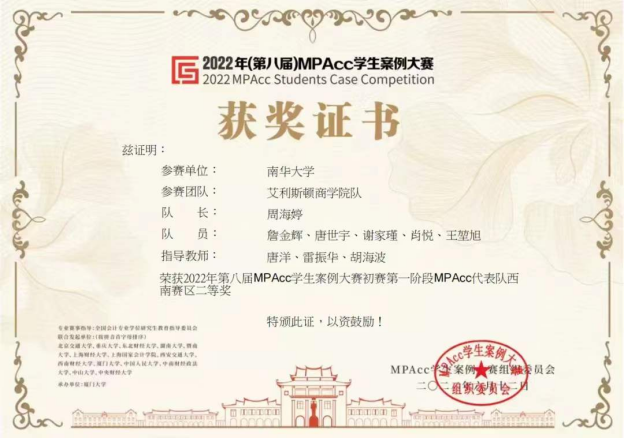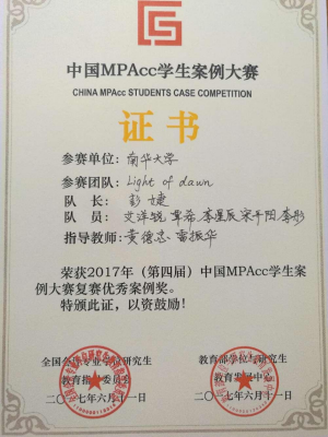 南华大学会计硕士(MPAcc)教育依托学校多年积淀形成的“核特色”和“环保优势”,坚持以立德树人为根本,立足湖南、面向全国,支持地方企事业单位及核工业企业发展,培养精通会计业务,熟悉市场规则,拥有良好的职业道德,掌握金融、法律、内部控制、信息技术等相关知识,具有国际化视野,能参与战略经营和管理决策,具有厚基础、强能力、高素质、宽视野的高层次会计管理人才。南华大学会计硕士专业学位点已建立了一支学历层次结构合理、会计职业资质高、理论功底厚实、实践经验丰富的专业化教学团队和导师团队。南华大学会计专硕学生自2015年首次参加全国MPAcc学生案例大赛以来,南华大学连续四届晋级全国十强,并获得全国二等奖1项,三等奖1项,优秀案例奖2项,最佳创意奖1项,个人最佳表现奖2项。在湖南省的MPAcc学生案例大赛中,取得了一等奖1项,二等奖6项,三等奖8项。经过多年的培育,南华大学MPAcc项目已成为国防核工业系统和湘中南、桂北、赣西以及粤北地区高级财会审精英人才的摇篮。