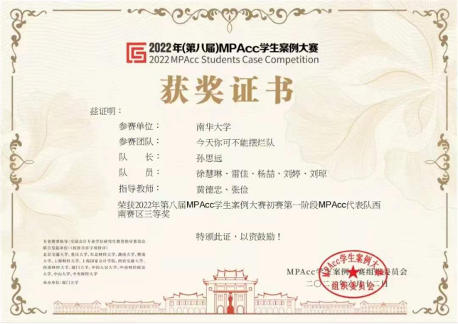 图2 获得全国MPAcc学生案例大赛西南赛区一等奖1项,二等奖1项,三等奖1项