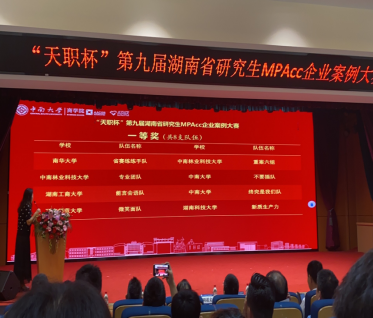 2024年5月18日,由湖南省教育厅主办、湖南省会计学科联盟指导、中南大学承办、天职国际会计师事务所协办的“天职杯”第九届湖南省研究生MPAcc企业案例大赛决赛在中南大学举行。本次大赛以“数智化变革赋能管理会计创新,提升企业核心竞争力”为主题,来自全省13所高校31支队伍参加决赛。经过激烈角逐,我校“省赛练练手队”(队员:韩冰凌、文湘兰、陶慧、向蝶、成易桦、罗翔;指导老师:黄德忠、李冬生、黄玉龙)获得省一等奖,“翠果打烂他的队”(队员:温琳艳、梁惠萍、朱溦溦、宣宝钿、梁情慧、万良冲;指导老师:唐洋、张俭、游战武)和“账证核队”(队员:王冯世浩、姚静、肖菁、彭莉萍、滕婉婧、李健;指导老师:李冬生、张俭、黄德忠)获得省三等奖。同时,我校也获得“优秀组织奖”,黄德忠、李冬生、黄玉龙三位老师获得“优秀指导老师”。