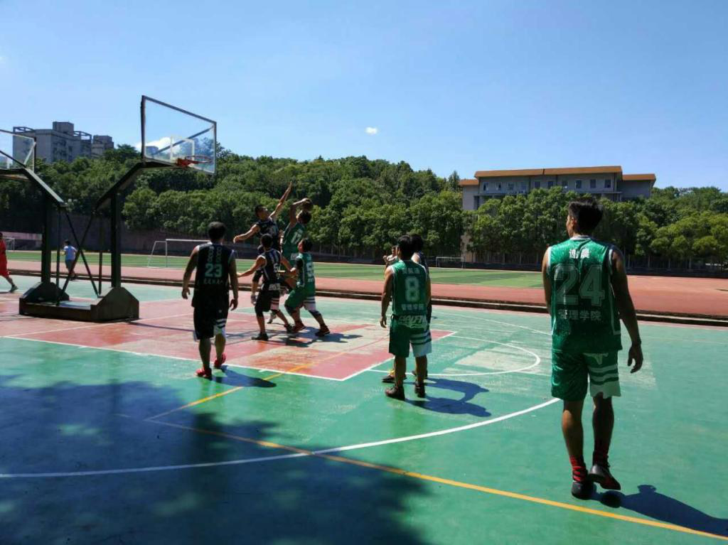 裁判员一声哨响,比赛正式开始。我院篮球运动员们顶着烈日,斗志昂扬,个个雄姿英发,在场上你争我夺。赛事进行到高潮,观众激情四射,加油声此起彼伏,现场气氛十分活跃。双方比分打平,我院与临床学硕展开最后的交战,一方发起猛攻,一方持续防守,在经历了两次胶着状态后,我院最终以28:34的比分稍逊一筹。比赛虽有遗憾,但我们仍为管院的篮球队员们喝彩,他们的辛勤汗水值得我们的尊敬,虽败犹荣。