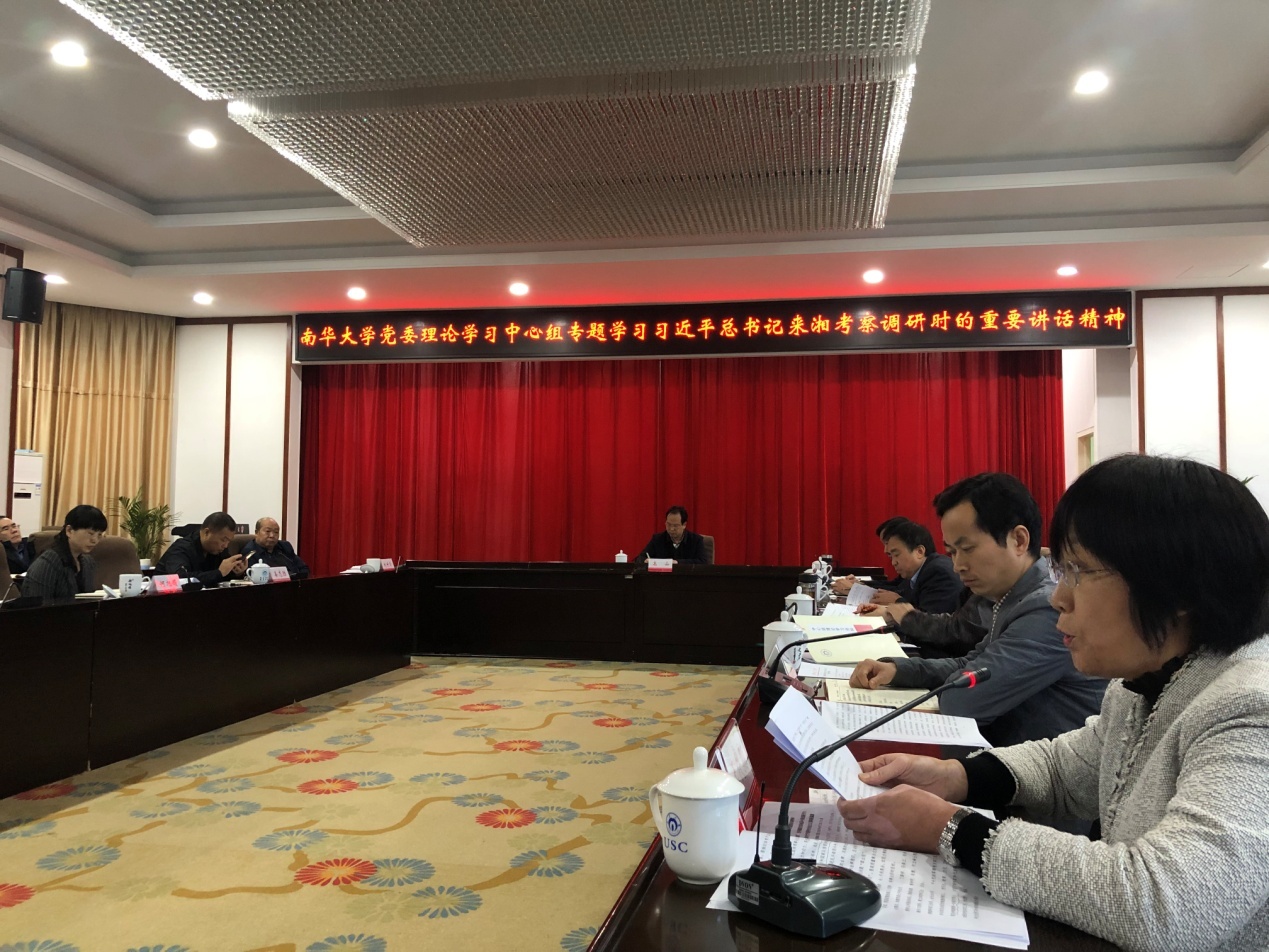 10月8日上午,南华大学党委理论学习中心组在第一办分楼视频会议室举行主题为“深入学习习近平总书记来湘考察调研时的系列重要讲话指示精神”的集中学习。在会上,校党委书记高山传达了学习习近平总书记在湖南考察工作结束时的讲话精神和省委书记杜家毫在全省领导干部会议上的讲话精神,副书记阳小华传达学习习近平总书记在基层代表座谈会上的重要讲话精神和习近平总书记在教育文化卫生体育领域专家代表座谈会上的重要讲话精神,学校部分校领导和部门领导做了交流发言。我院院长王铁骊代表学院做了题为“探索新思路,催生新动能,激发新活力,奋力谱写beats365唯一官方网站发展新篇章”的交流发言。