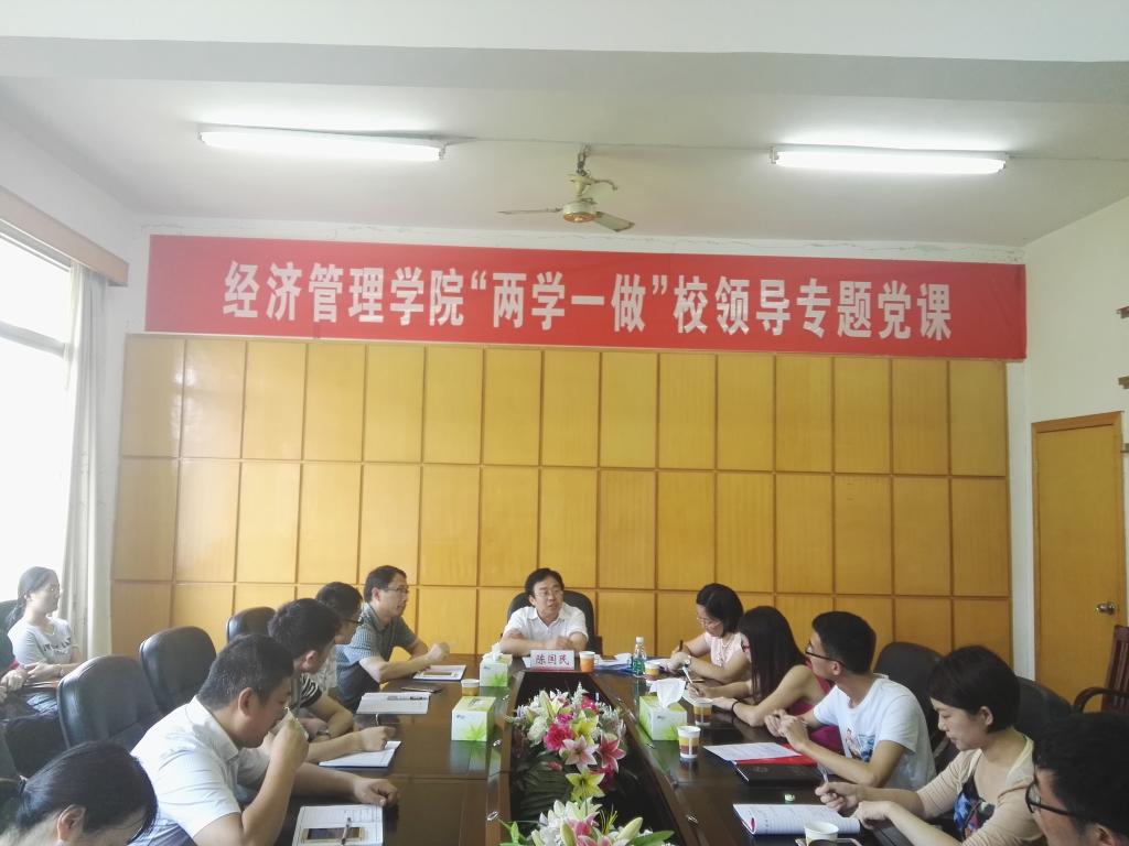 6月17日上午,副校长陈国民在经济管理学院会议室讲授题为“牢记入党誓词,践行四讲四有”“两学一做”学习教育专题党课。院党委书记谢四平,院长王铁骊,系室负责人、支部书记及师生党员聆听了本次党课。