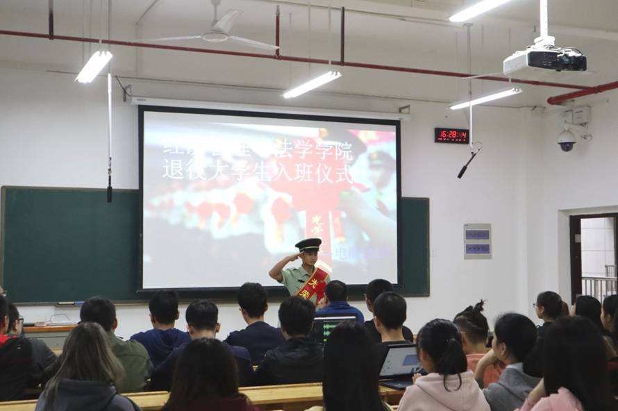 在入班仪式上,各位退役大学生分享了他们的军旅生活,表达了对军旅生活的怀念和感激。电商181班杨凯说,“当兵后悔两年,不当兵后悔一辈子”是他最深的感触。他用“紧张有趣,冲淡了对现实的落差感”来形容这次独特的体验,“死一般寂静的深山老林中,少了班长的温暖问候,多的是不善表达的严格要求,陌生的环境,陌生的制度,陌生的人”,这样的环境教会了他孝顺,他会每周末给家里打一次电话,报喜不报忧。部队里的中队长跟他分享了想家的秘诀:把部队当作家。“部队高强度训练让人不堪重负,却也有温暖感动,军营条框的锤炼下,战友之间的情谊更加深厚,饭吃一次少一次,人见一面少一面。”他是如此形容这段苦与乐并存的时光。