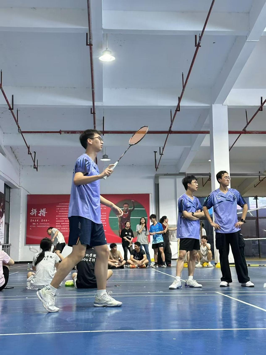 这次羽毛球比赛的过程中充满了艰辛与感动。比赛首日,队员们从清晨7:30持续奋战至深夜22:30,高强度赛程对体能和意志对每位队员都是一项严峻考验。特别令人动容的是,正忙于毕业答辩的大四学姐,即便白天课业繁重,依然在夜晚奔赴赛场为团队而战;次日四强赛时,刚刚完成答辩的学长也马不停蹄赶来参赛。他们用实际行动诠释了什么是热爱与担当。