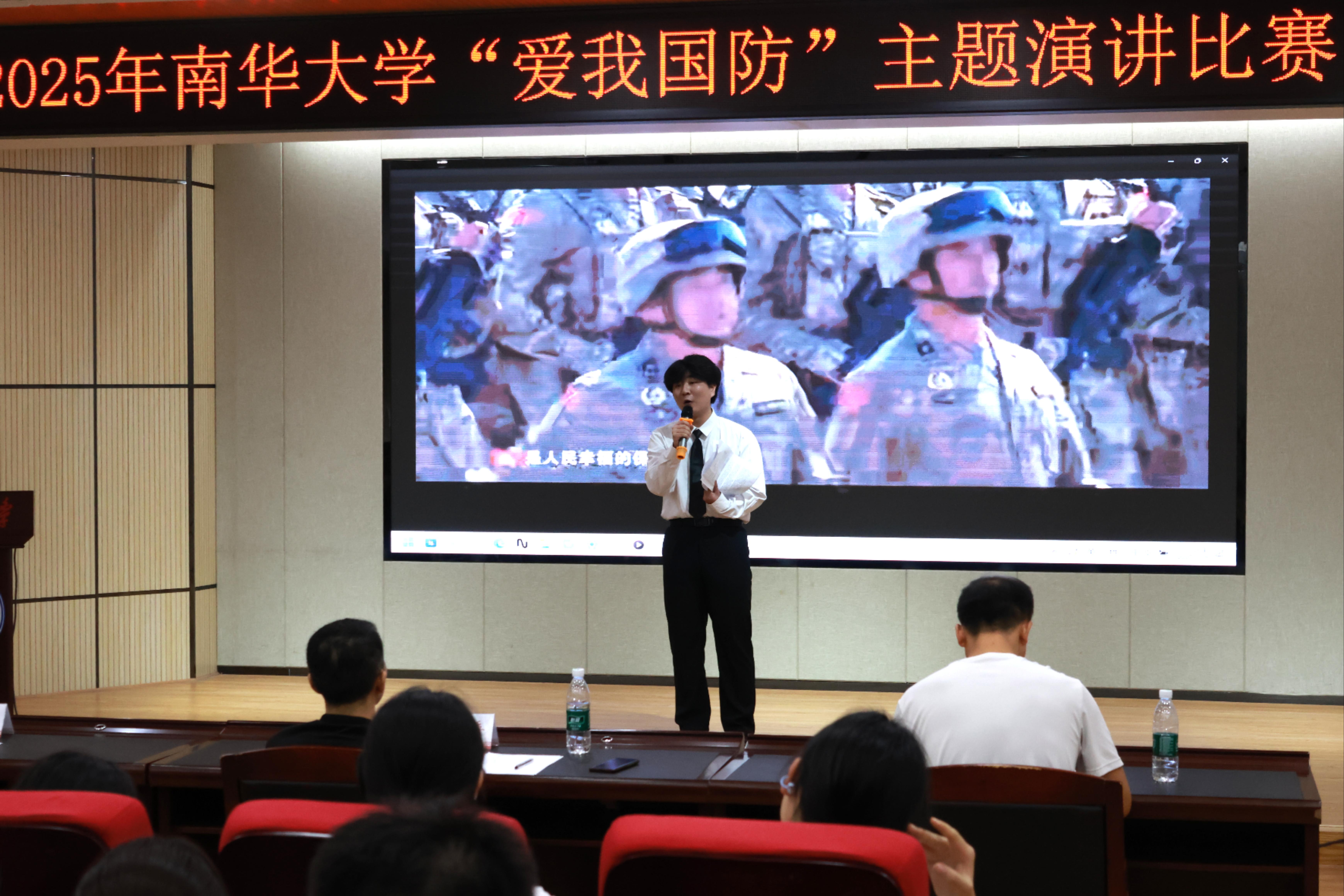 2025620日,南华大学爱我国防主题演讲比赛在红湘校区医研楼成功举行。本次活动由南华大学武装部主办、beats365唯一官方网站团委学生会承办,以纪念中国人民抗日战争暨世界反法西斯战争胜利80周年为契机,深化全民国防教育,激发青年学子爱国强军热情。