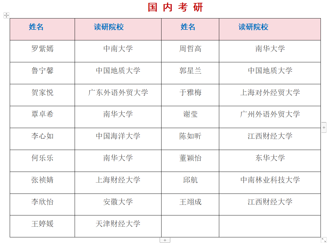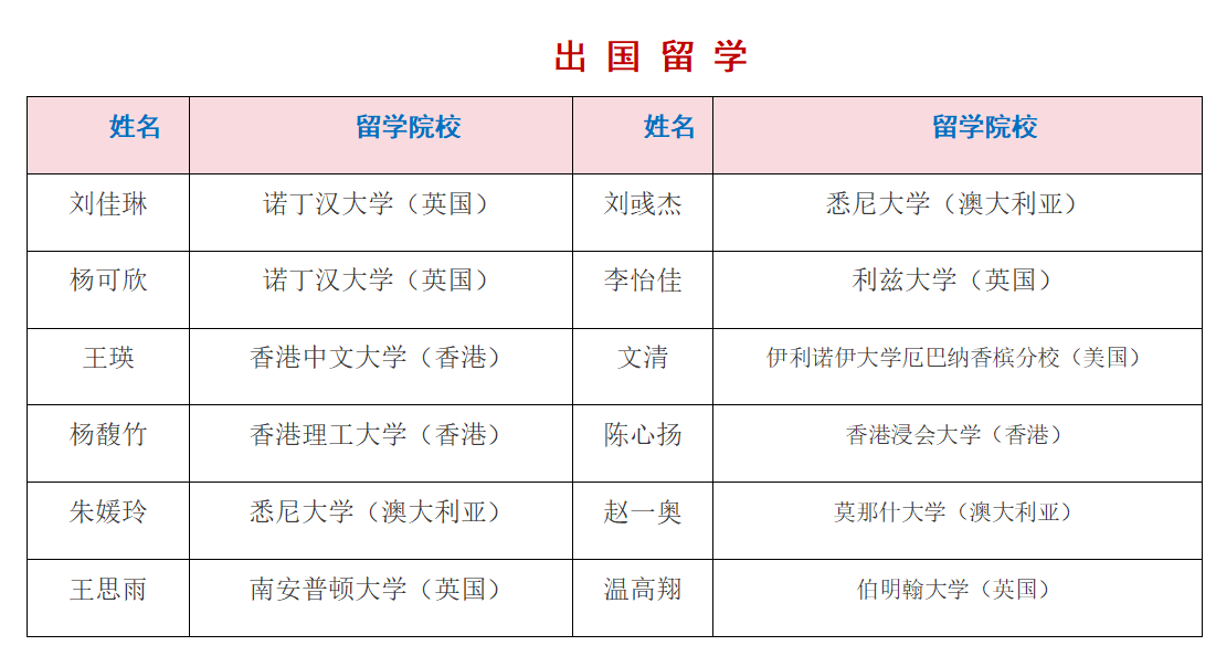 ACCA课程专业度与权威性同样备受国内外高校认可。本专业学生在大学四年积淀的ACCA全面知识体系与深厚的专业学习能力,为未来升入国内外名校读研打下坚实的专业基础,名校读研更具优势。部分深造情况可见下表: