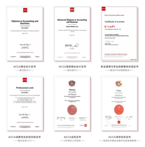 2. ACCA 资格证书(通过ACCA全部考试合格)和高级商业会计证书(通过F1—F9等9科ACCA考试合格);