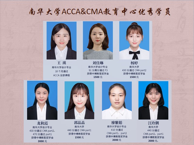 王瑛、刘佳琳、杨婷、龙秋霞、郭晶晶、廖紫娟、汪玲俐七名同学获本次ACCA&CMA教育中心优秀学员荣誉称号,邓淑敏同学获得进取之星称号。