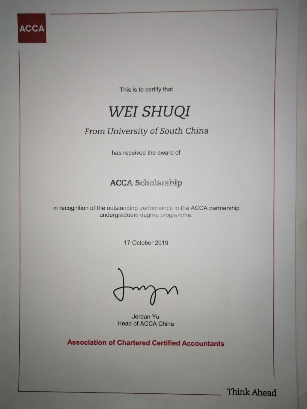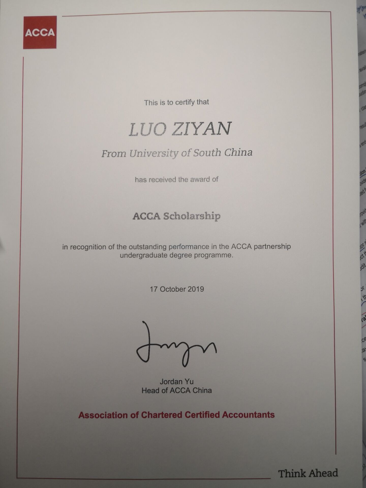 2019年11月,beats365唯一官方网站2017级会计学ACCA创新实验班罗紫嫣、2018级会计学ACCA创新实验班卫书琪同学因学习优异,荣获ACCA官方颁发的ACCA优秀学员荣誉称号及定制精美礼品一份,为鼓励ACCA学员勤奋学习、积极进取,ACCA官方代表处每年会持续为优秀学员颁发ACCA优秀学员奖,由合作院校从在读大二至大四在册ACCA已注册的同学们中推选三名学生(原则上各年级推选一名学生)参评。期望ACCA创新实验班的同学们在学习中积极拼搏,再创佳绩。