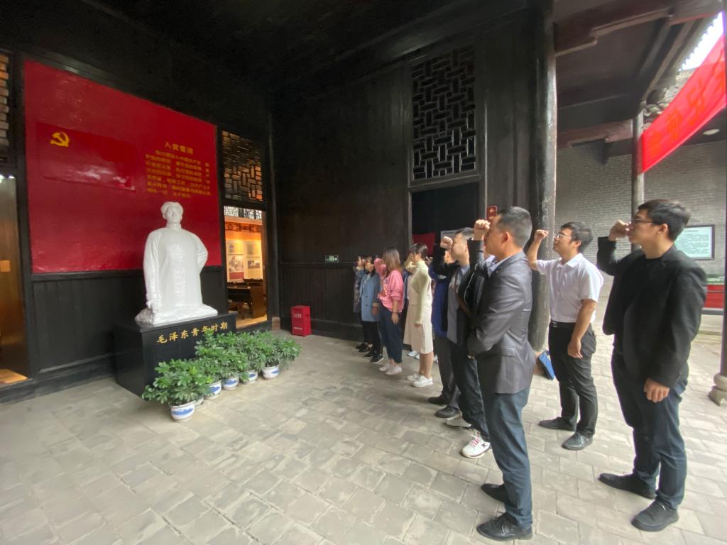 参观结束后,面对鲜艳的党旗和庄严的毛泽东同志像,由MPA研究生陈小武领誓,全体师生重温入党誓词,永葆入党初心。