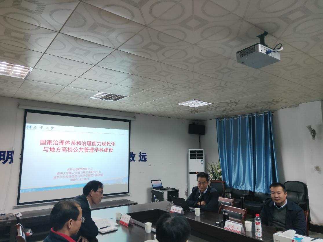 本次座谈会以“国家治理体系和治理能力现代化与地方高校公共管理学科建设”为主题,特邀中国社会科学杂志社传播中心主任林跃勤研究员和同济大学政治与国际关系学院余敏江教授莅临指导,公管系陈海利、曾建国、李望平、李忆华、胡琦等数位老师和公共管理专业学生参加了本次座谈。彭建军教授简要回顾了我校公共管理学科的发展历程,结合党的十九届四中全会给公共管理学科发展带来的机遇和挑战,提出了我校公共管理学科建设的战略思考。