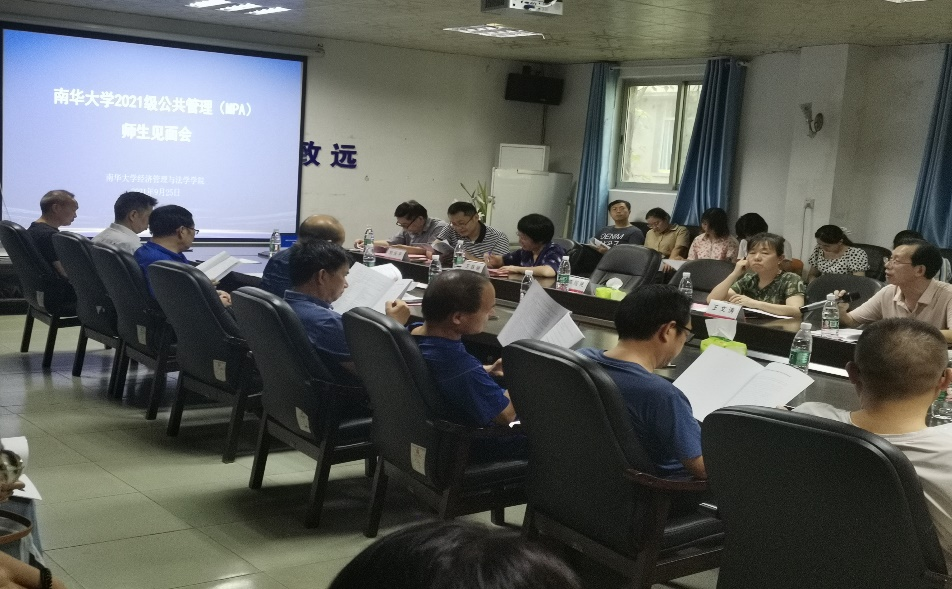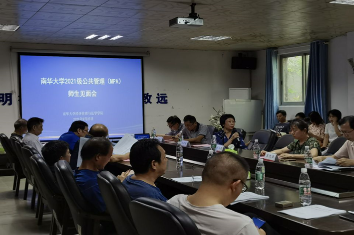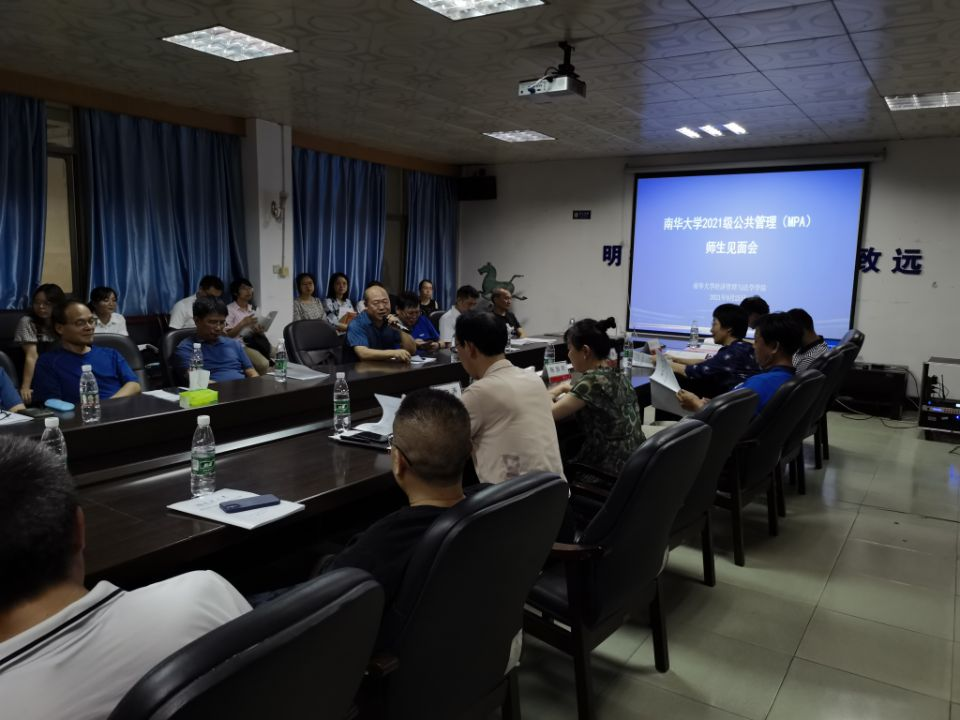 2021年9月25日下午,beats365唯一官方网站在红湘校区就业大厅顺利召开南华大学2021级公共管理(MPA)研究生师生见面会。参加此次会议的有南华大学副校长陈国民、湖南工学院副校长刘升学、院党委书记王文涛、院长王铁骊、副院长刘保平、MPA教育中心硕士生导师及2021级全体MPA研究生新生。本次会议由院党委书记王文涛主持。