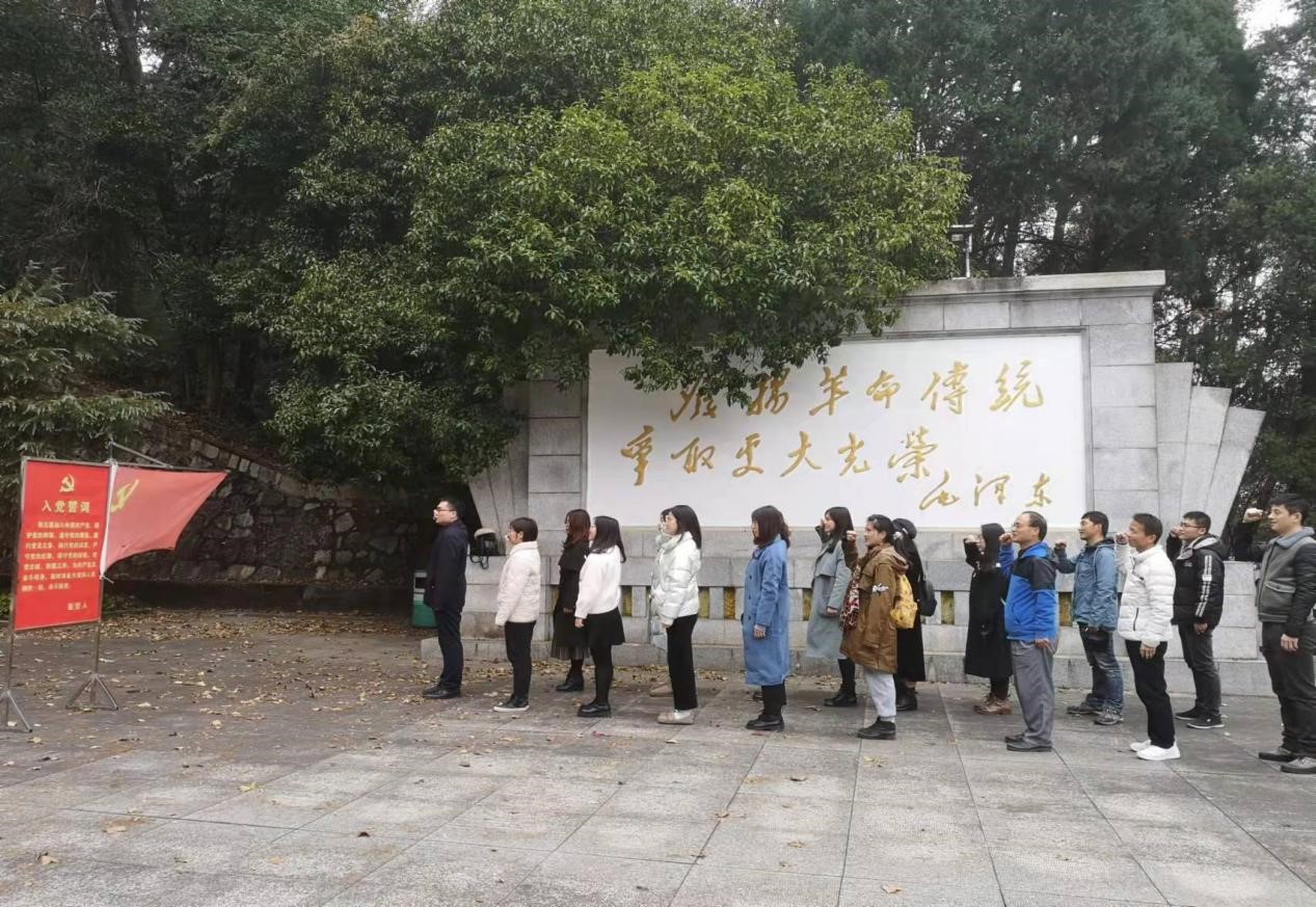 在参观过程中,李忆华老师向同学们介绍了毛泽建烈士的光荣事迹,毛泽建同志1921年毛泽建同志跟随毛泽东到长沙读书,从此走上了革命道路。1923年成为中国共产党建党早期的共产党员,是毛泽东同志亲自培养的共产主义女战士。1926年,毛泽建同志遵照党的指示到衡阳县从事农民革命工作,她发动广大农民起来打土豪劣绅,她指导创建的神皇山农会被评为“模范农协”。1928年在耒阳的一次战斗中被捕,1929年被害于衡山县城马王庙坪,年仅24岁。所有同学被毛泽建同志波澜壮阔的一生所震撼,对于同样风华正茂的我们来说深感所处盛世的来之不易,感慨生于华夏的幸运。最后,在李忆华老师的带领下,由欧阳捷同志领誓,带领全体党员同志重温入党誓词,向毛泽建烈士致敬:“我志愿加入中国共产党,拥护党的纲领,遵守党的章程,履行党员义务,执行党的决定,严守党的纪律,保守党的秘密,对党忠诚,积极工作,为共产主义奋斗终身,随时准备为党和人民牺牲一切,永不叛党。”以此勉励同学们坚定自我理念信念,拥有无畏牺牲的勇气。