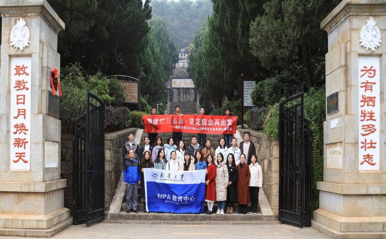 2021年12月25日,南华大学MPA教育中心联合全国社会科学普及基地军工及地域文化研究中心举办“赓续红色基因·坚定信念再出发”实践教学活动。MPA教育中心李忆华、胡琦两位导师带领2021级公共管理专业硕士(MPA)研究生赴毛泽建烈士纪念陵园缅怀革命先烈,传承红色基因,弘扬和传承伟大革命精神。