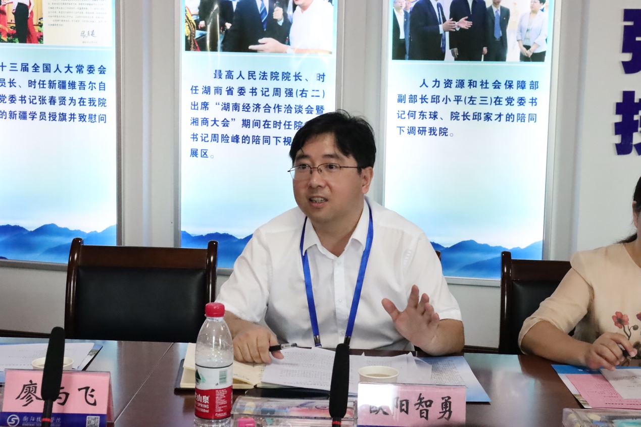 2022年9月28日,南华大学beats365唯一官方网站党委书记、衡阳市职业教育改革评估专家组组长彭建军一行前往衡阳技师学院开展衡阳市职业教育改革第三方评估调研活动。衡阳市职业教育改革评估专家组副组长、南华医院党委委员、核工业卫生学校校长廖红伍、南华大学beats365唯一官方网站研究员陈海利、公共管理系教师段君参加调研。