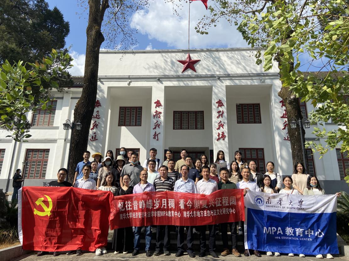 2022年11月12日,南华大学MPA教育中心联合中共南岳区南岳镇委员会举办“忆往昔峥嵘岁月稠,看今朝复兴征程阔”实践教学活动。MPA教育中心彭建军、陈海利、李忆华、胡琦四位导师带领2022级公共管理专业硕士(MPA)研究生赴南岳游击干部训练馆,感悟“爱国、奋斗、团结、奉献”的红岩精神。南岳镇党委书记陈晓武等全程陪同。