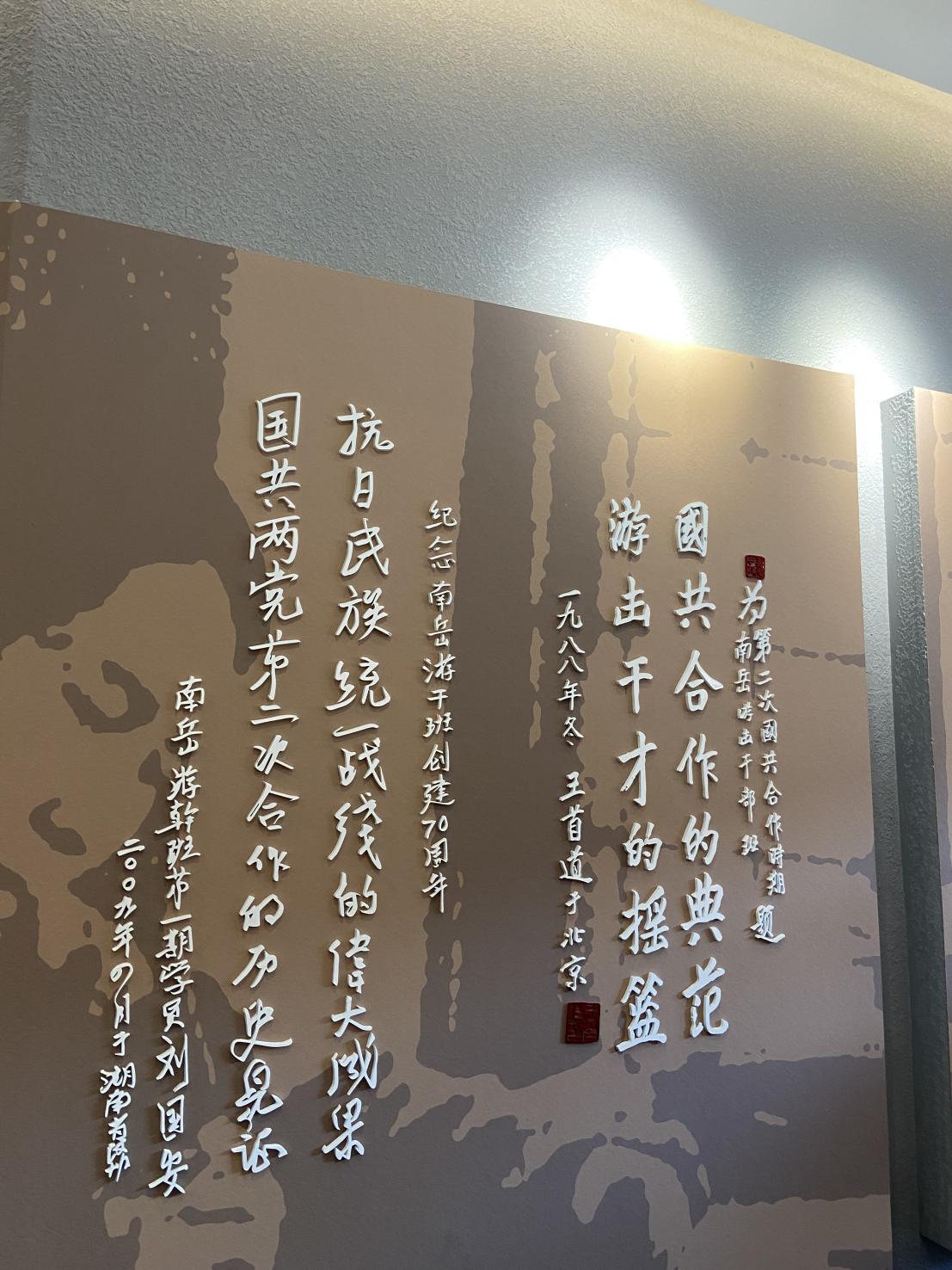 南岳游击干部训练班陈列室由原“南岳书院”改建而成,分为星星之火、救亡图存、游干摇篮、迎接黎明、群英荟萃和走进新时代六个部分。在南岳游击干部训练班陈列馆,一张张照片、一封封书信、一件件实物,仿佛在向我们展现当年神州大地炮火纷飞、硝烟弥漫的悲壮历史。南岳游击干部训练班陈列馆解说员告诉我们,秉持着“用历史作证,让史实发言”方针,展示南岳光辉灿烂的革命历史,陈列馆将激励后人在红色文化的浸润下,弘扬南岳老区精神,传承红色基因,不忘初心牢记使命,建功新时代。