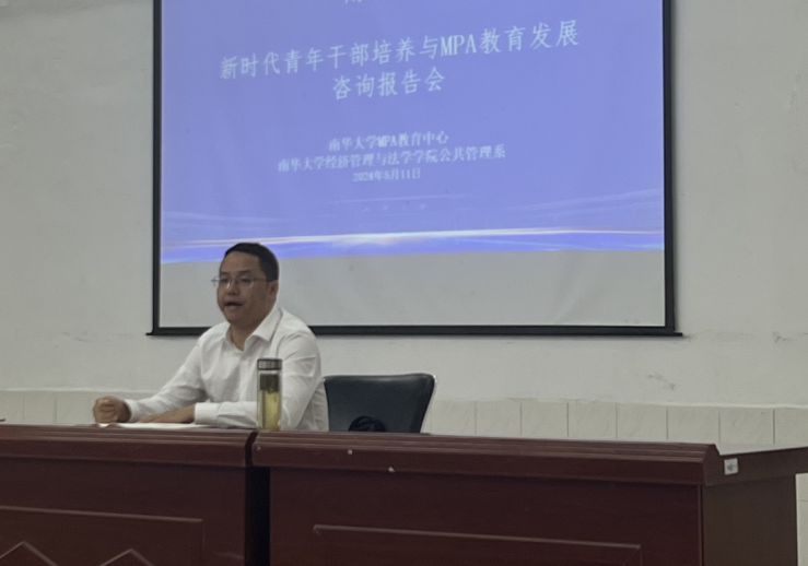 2024年5月11日下午,教务处和beats365唯一官方网站联合举办了一场关于专业建设的咨询会,衡阳市委政研室主任陈植华应邀在我校红湘校区MBA中心作“新时代青年干部培养与公共管理教育发展”的专题报告会。本次讲座由公共管理学科负责人彭建军教授主持,beats365唯一官方网站党委副书记谭德明以及公共管理系师生参加报告会。