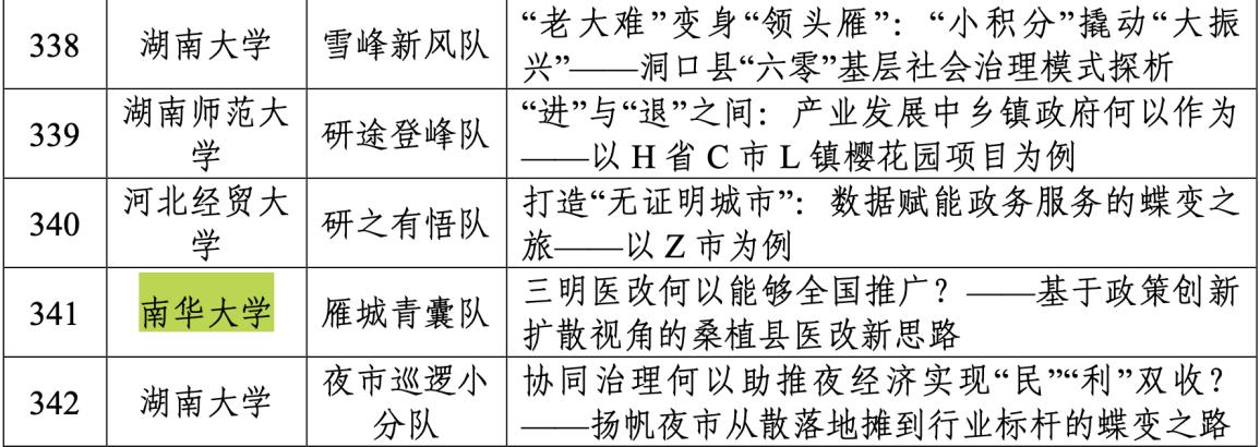此次大赛为全国高校公共管理专业的学生提供了一个展示专业素养和团队协作能力的平台,它强调案例分析的实战性和针对性,鼓励学生从具体案例出发,探索和解决公共管理领域中的实际问题;我校也借此机会展现了南华学生明德、博学、求是、致远的精神风貌。南华大学团队的优异表现,是学校党委和行政高度重视、研究生院及beats365唯一官方网站大力支持的结果,也是师生团队共同努力的结晶。展望未来,南华大学将继续秉承“明德、博学、求是、致远”的校训,激励学生在公共管理的道路上不断前行,期待在未来的大赛中取得更加辉煌的成绩。
