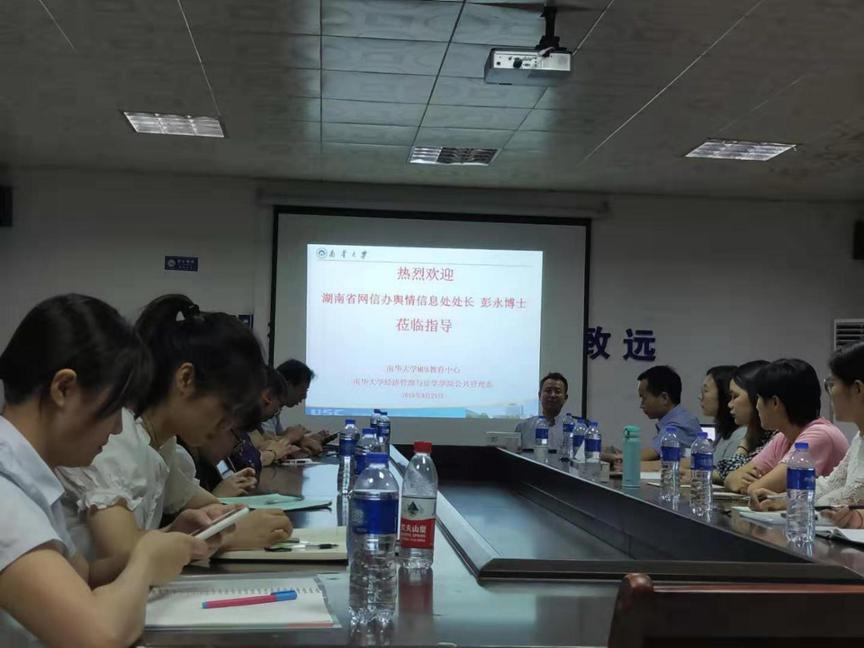 2019年9月30日,南华大学beats365唯一官方网站在我校红湘校区招生就业处一楼办公室举行题为“全媒体时代舆情素养与应对技巧”学术报告会。本次讲座由湖南省委网信办网络应急与网络舆情处副处长彭永博士主讲,公共管理学科带头人彭建军教授主持。校党委委员、党委宣传部部长刘文君出席报告会,参加报告会的还有陈海利等公共管理系教师、MPA教育中心和公共管理系的在读研究生。