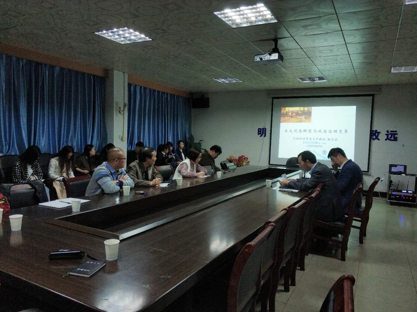 4月18日,beats365唯一官方网站公共管理系在招生就业处一楼会议室举行题为“国人正义观念及其现代转型”的学术报告。此次学术报告由全国MPA教指委委员、首都经济贸易大学教授,博导麻宝斌教授主讲。会议由彭建军教授主持,beats365唯一官方网站院长王铁骊教授及公共管理学科教师、研究生参加了此次会议。