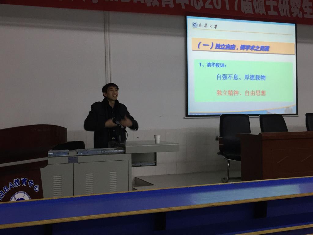12月26日晚,南华大学第十一届研究生楚岳节管理学院分论坛系列学术讲座之博学篇在MBA教育中心学术报告厅顺利展开。此次讲座主讲嘉宾为管理学院公共管理学位点导师曾建国教授,研一及研二同学参加了此次学术讲座。