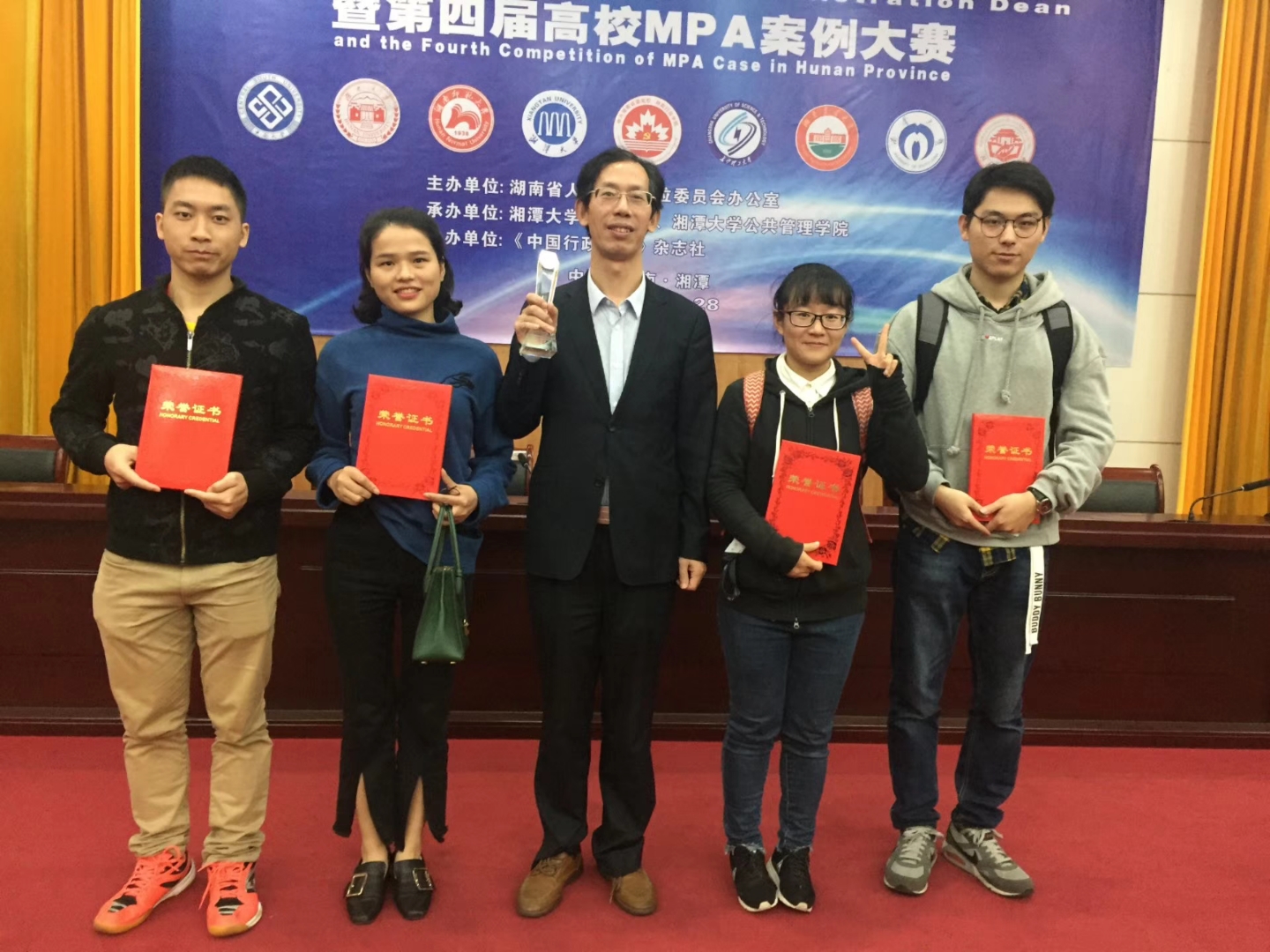 2018年10月28日,湖南省第四届MPA案例大赛完美落下帷幕。南华大学beats365唯一官方网站公共管理学科选送的“舌尖安全监察队”、“复兴队”分别荣获一等奖和三等奖。这是我校公共管理学科在连续获得第一、二、三届一等奖之后第四次获得一等奖。